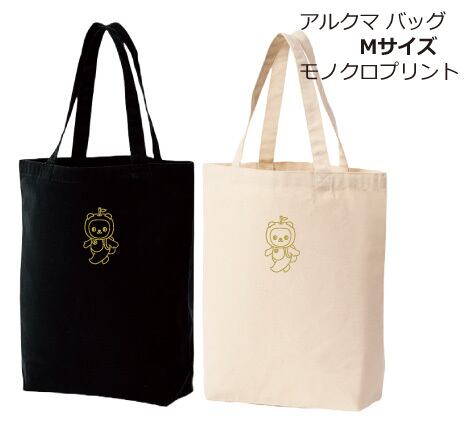 アルクマの可愛らしい姿が目を引く一品で、どこに持っていくのも楽しくなること間違いなし! お出かけやお買い物にピッタリなMサイズなので、必要な物をしっかり収納できます。