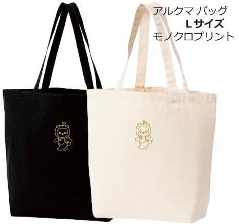 「長野県PRキャラクター『アルクマ』」がモノクロプリントされたバッグです。